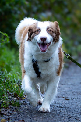 Ab und an in fremden Situationen ist Cara noch schüchtern, aber wenn man mit ihr die Situation gemeinsam bestreitet, folgt sie ihrem Begleiter auf Schritt und Tritt.