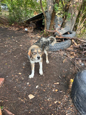 Emily ist so eine tolle, offene, herzliche Hündin, obwohl sie so ein trauriges Schicksal hat. Emily ist eine Kettenhündin, die wir seit 4 Monaten füttern und versorgen, denn die Besitzer kümmern sich nicht um sie.