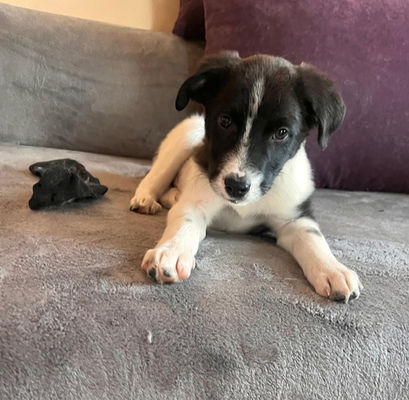 Welpentypisch, noch etwas zurückhaltend