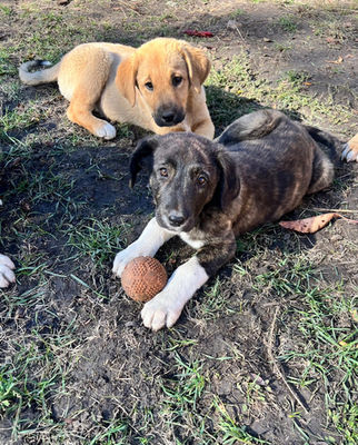 Die Welpen und die Mama sind sehr offen und auch menschenbezogen, die Welpen haben nur Quatsch im Kopf und die Mama genießt endlich ihre Sicherheit.
