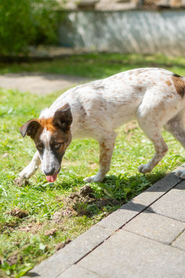Die 5 Geschwister sind sogenannte Gartenhunde. Die Mama ist dort der eigentliche Gartenhund, wir haben eine Meldung bekommen, dass dort 2 Hündinnen leben, die jeweils 5 Babys haben. Also sind wir mit der Gemeinde dort hingefahren und haben uns die Situationen angeschaut, den Hunden geht es für bulgarische Verhältnisse echt gut. Jedoch haben die Besitzer nun die Auflage bekommen, die Hündinnen zu registrieren und wir werden sie kastrieren, dass das nicht mehr vorkommt.